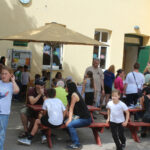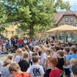 Wenige Tage vor dem Start der Sommerferien gab es wieder ein Fest auf dem Schulhof der EInstein-Grundschule in Caputh. Und wieder war es ein wirklich wunderschöner Nachmittag! Das Wetter spielte toll mit – bis auf ein paar wenige Regentropfen blieb es super sonnig und herrlich warm. So konnten alle Show-Anteile auf der Bühne vor dem Mehrzweckraum stattfinden und viele Eltern, Freunde und Angehöreige nutzten diese Möglichkeit. Was die Kinder im vergangenen Schuljahr in den verschiedensten AGs auf die Beine gestellt und gelernt haben, wurde voller Freude präsentiert.