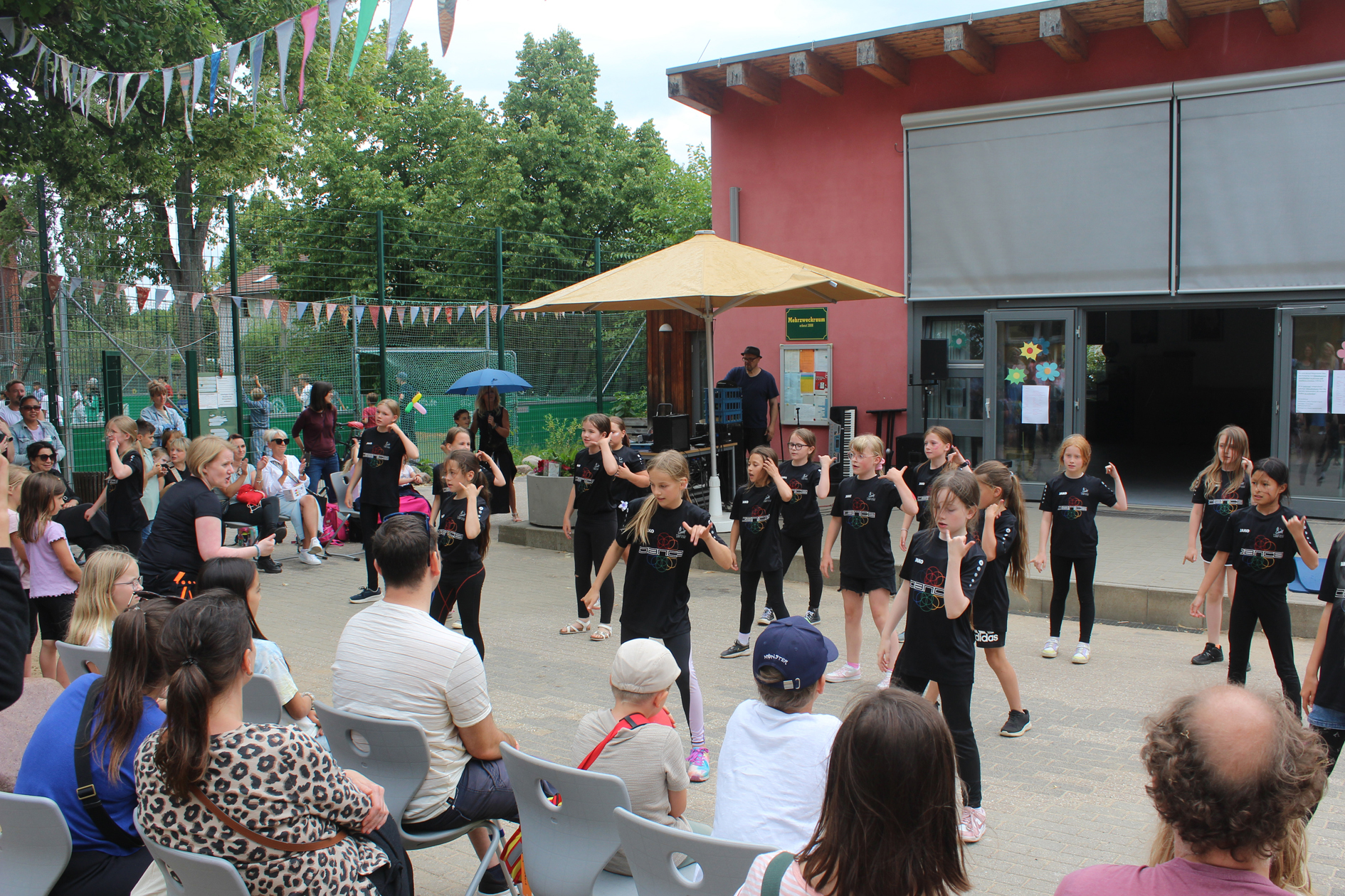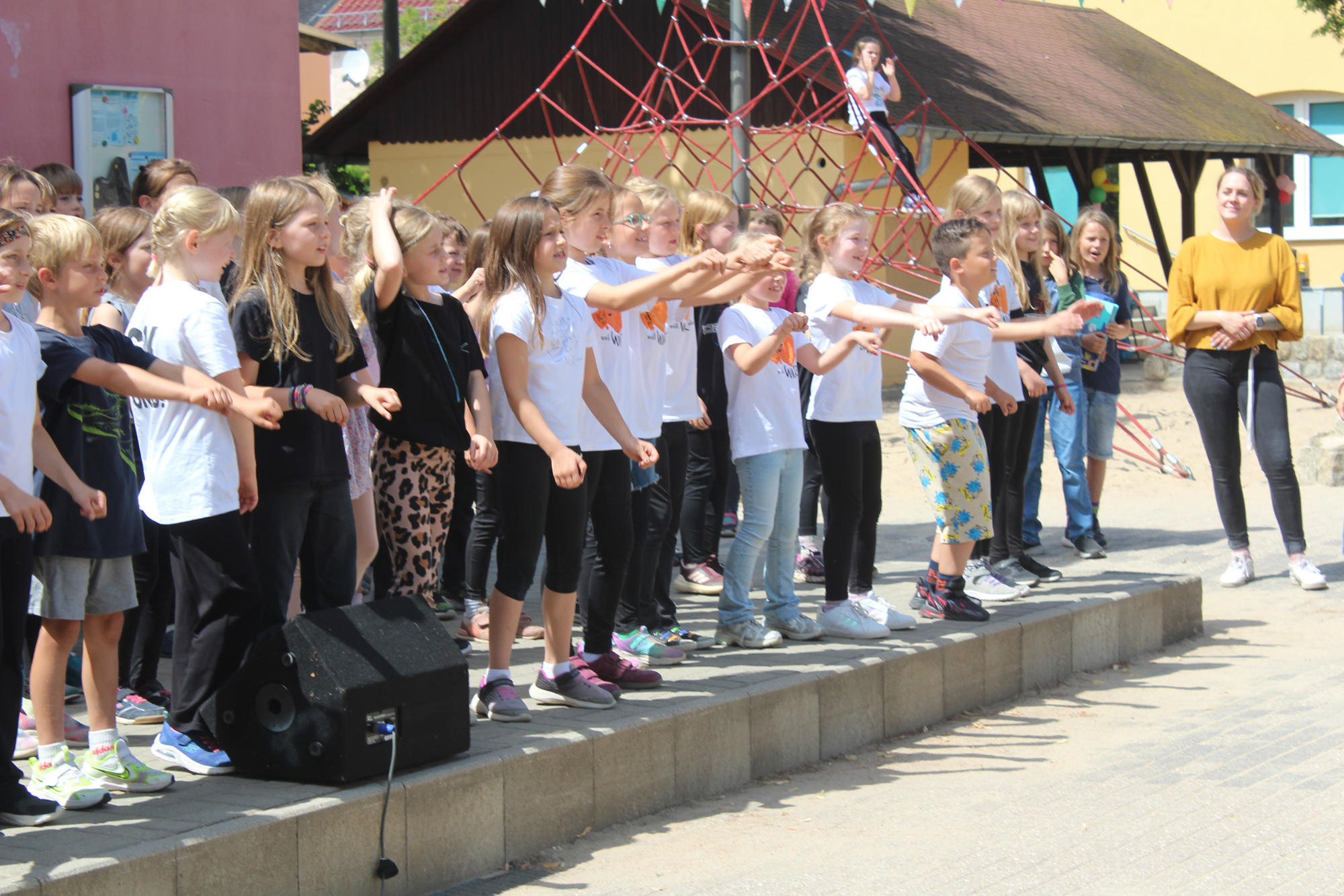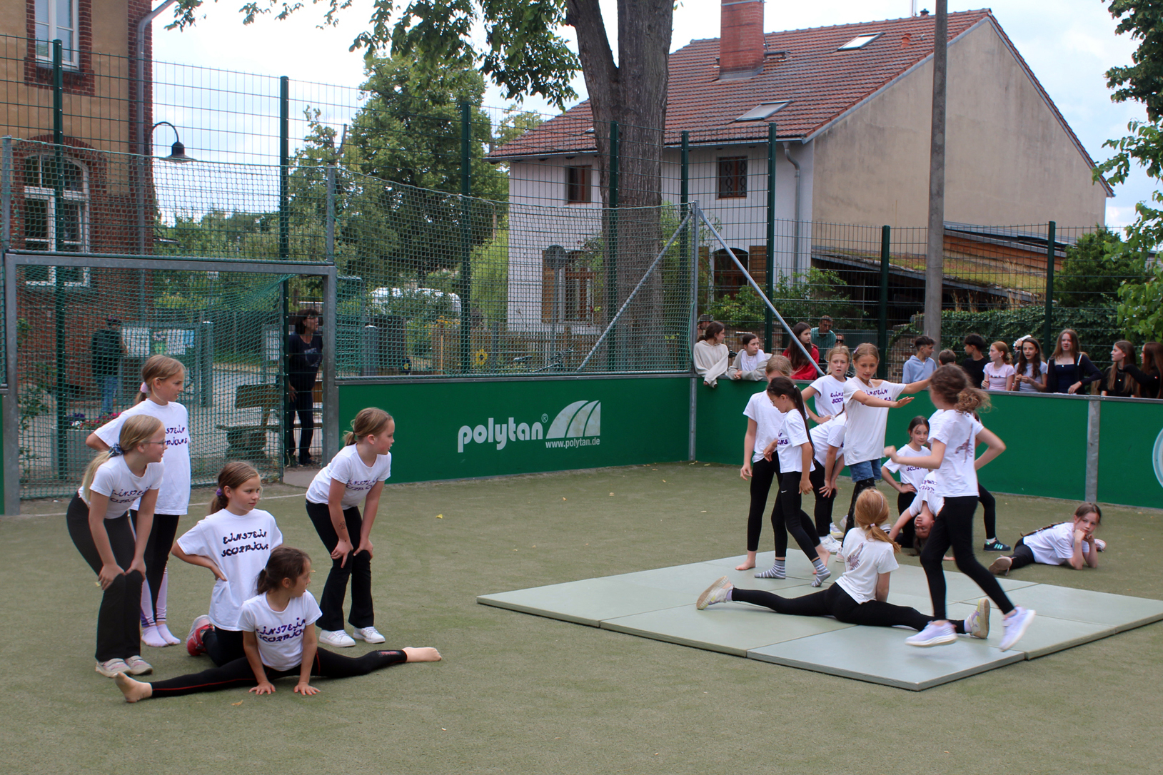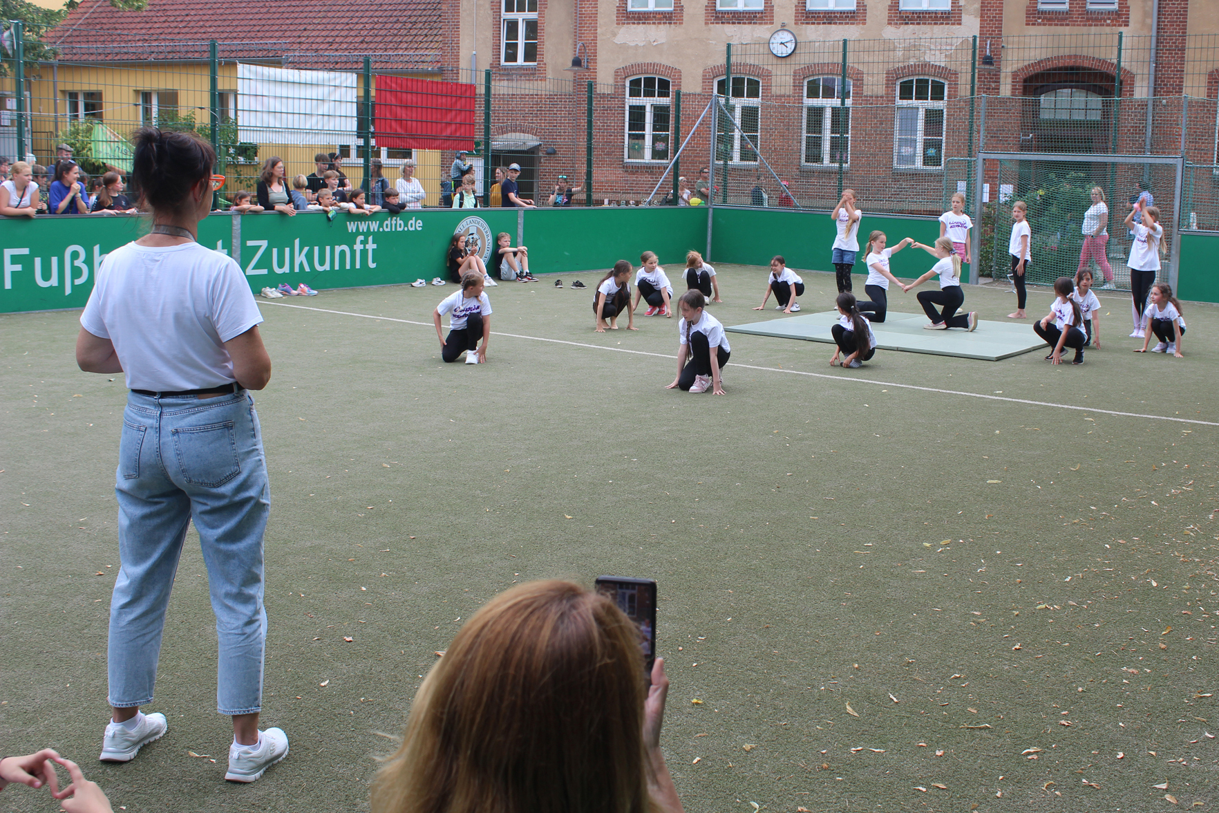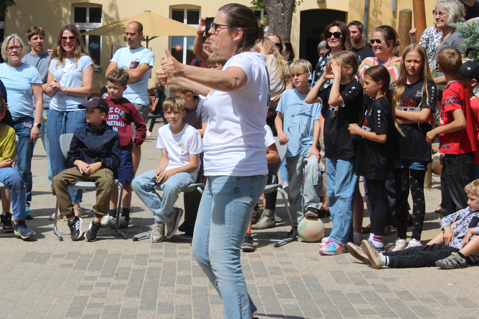 Wenige Tage vor dem Start der Sommerferien gab es wieder ein Fest auf dem Schulhof der EInstein-Grundschule in Caputh. Und wieder war es ein wirklich wunderschöner Nachmittag! Das Wetter spielte toll mit – bis auf ein paar wenige Regentropfen blieb es super sonnig und herrlich warm. So konnten alle Show-Anteile auf der Bühne vor dem Mehrzweckraum stattfinden und viele Eltern, Freunde und Angehöreige nutzten diese Möglichkeit. Was die Kinder im vergangenen Schuljahr in den verschiedensten AGs auf die Beine gestellt und gelernt haben, wurde voller Freude präsentiert.