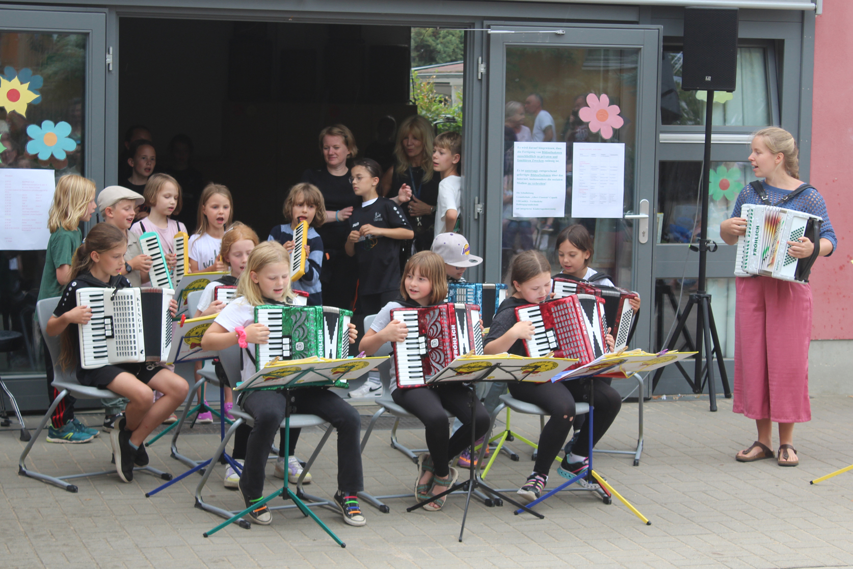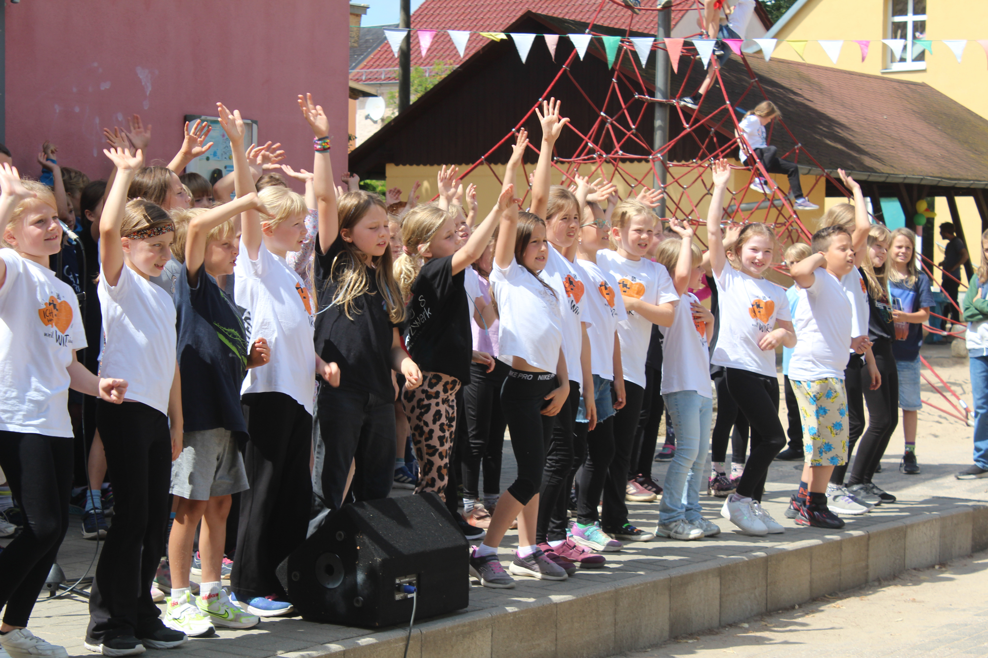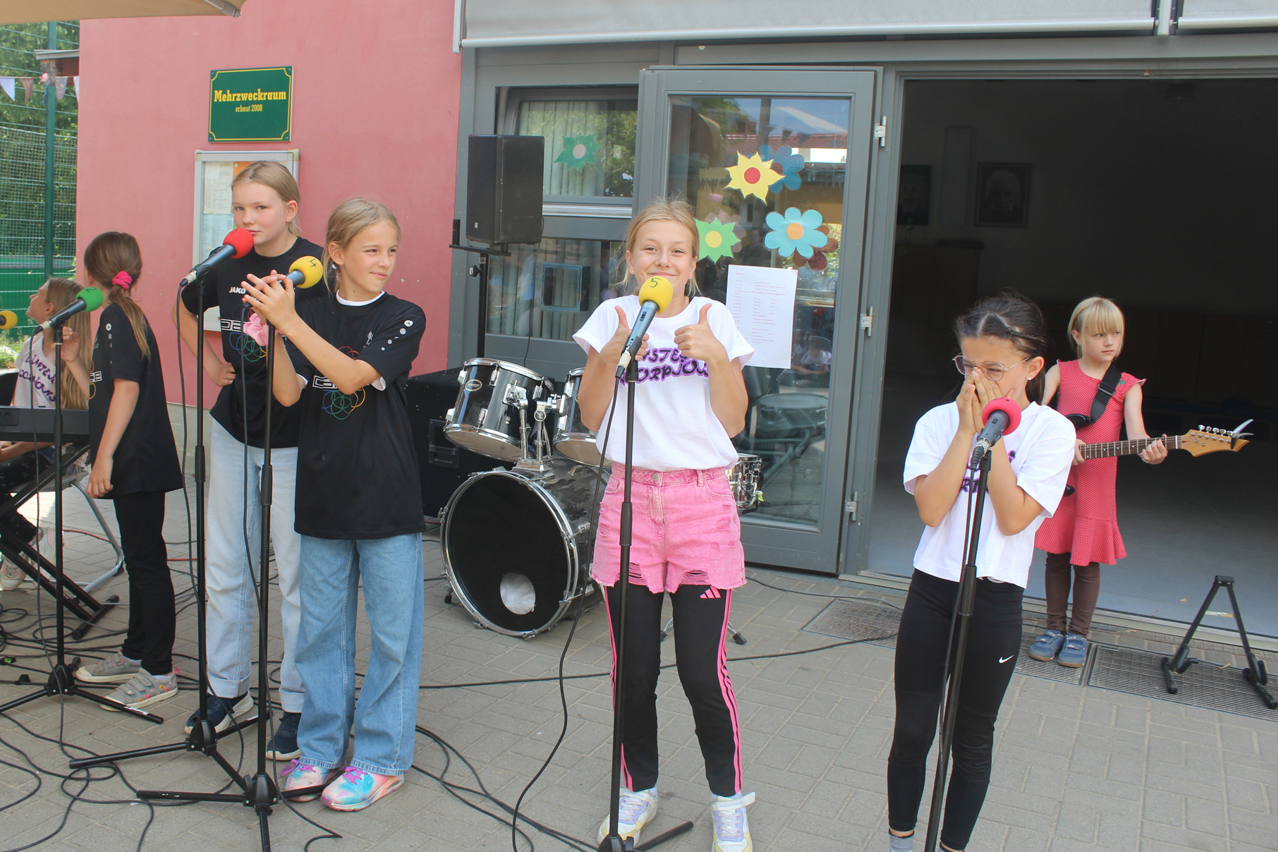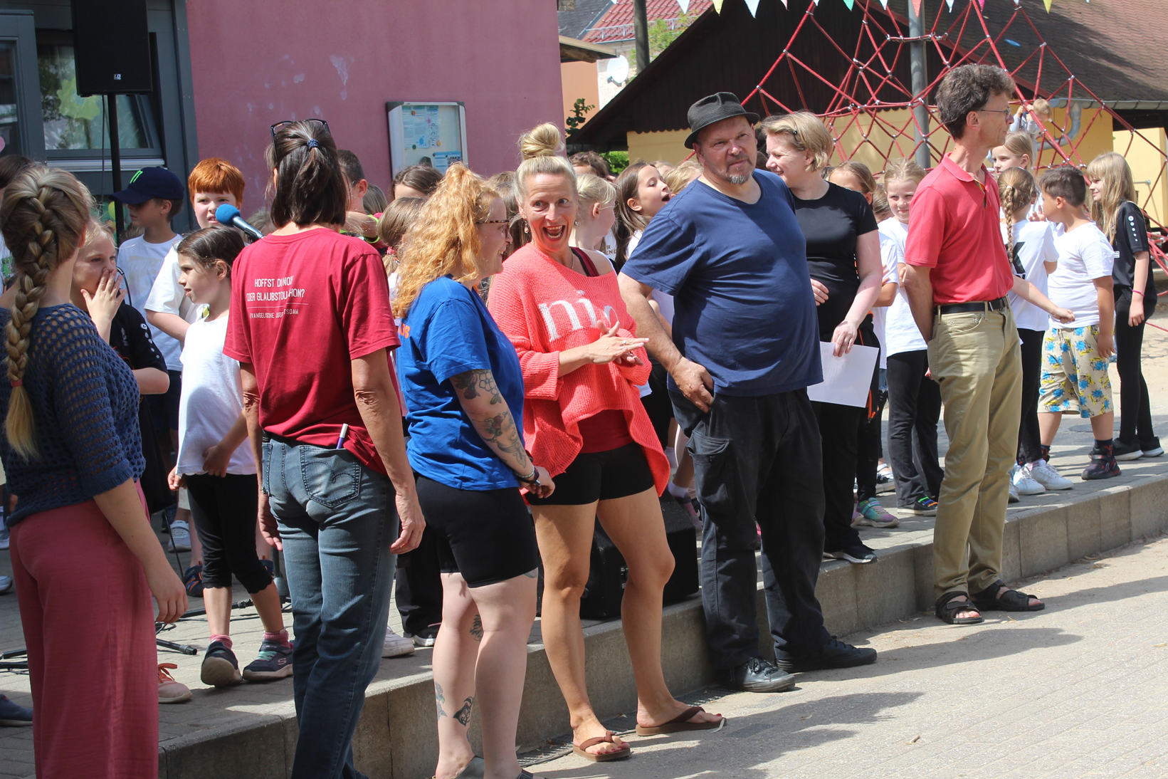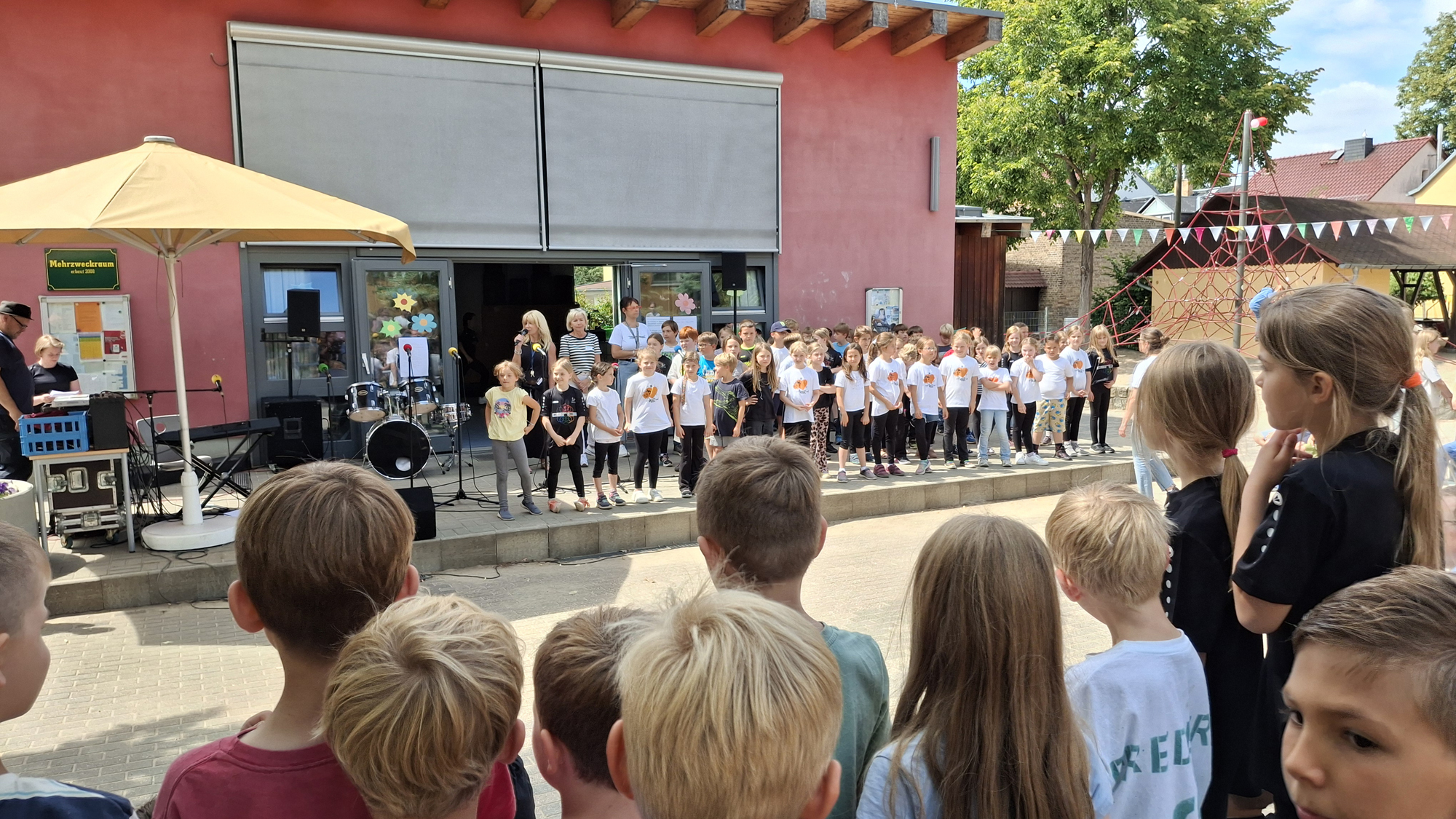 Wenige Tage vor dem Start der Sommerferien gab es wieder ein Fest auf dem Schulhof der EInstein-Grundschule in Caputh. Und wieder war es ein wirklich wunderschöner Nachmittag! Das Wetter spielte toll mit – bis auf ein paar wenige Regentropfen blieb es super sonnig und herrlich warm. So konnten alle Show-Anteile auf der Bühne vor dem Mehrzweckraum stattfinden und viele Eltern, Freunde und Angehöreige nutzten diese Möglichkeit. Was die Kinder im vergangenen Schuljahr in den verschiedensten AGs auf die Beine gestellt und gelernt haben, wurde voller Freude präsentiert.