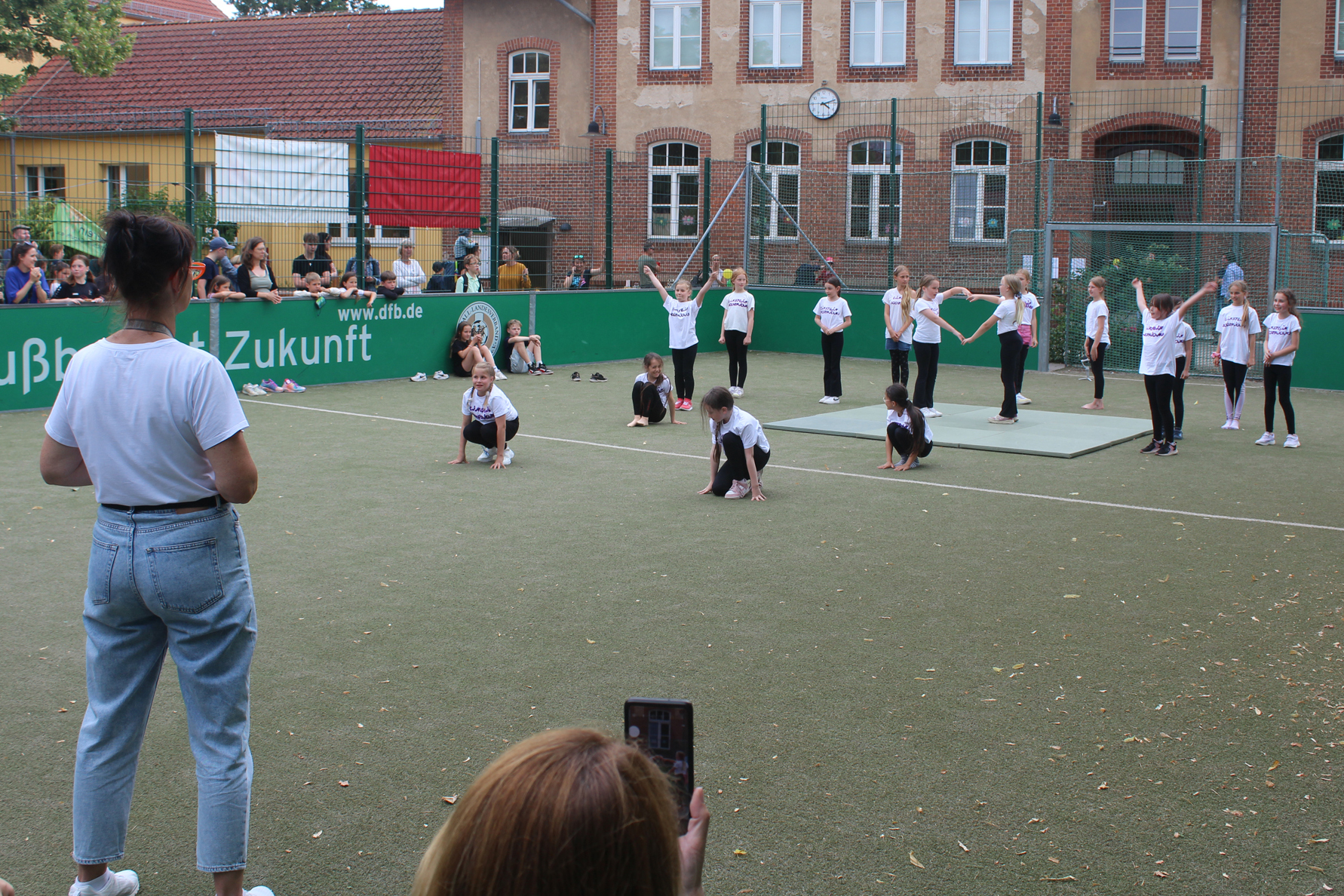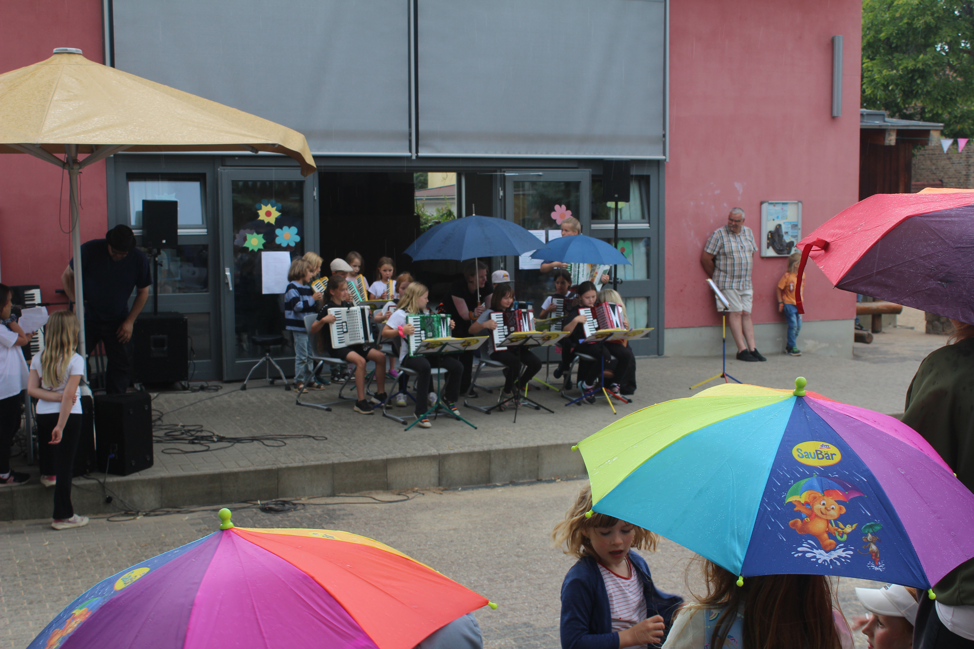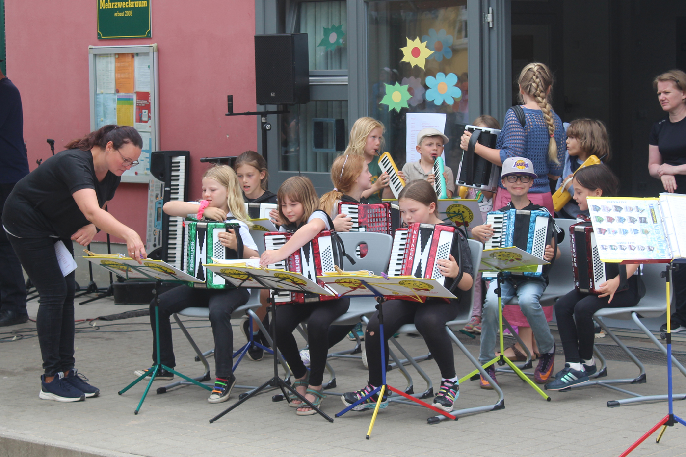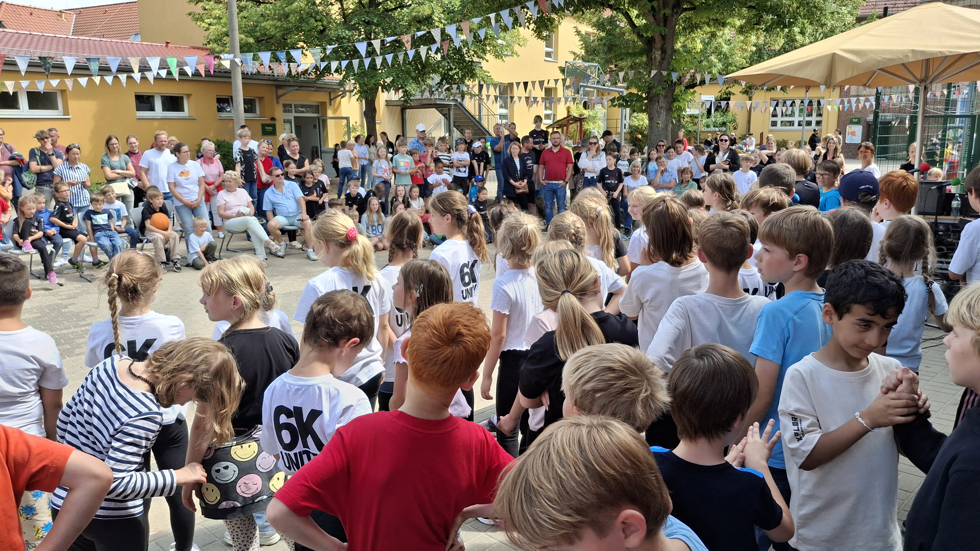 Wenige Tage vor dem Start der Sommerferien gab es wieder ein Fest auf dem Schulhof der EInstein-Grundschule in Caputh. Und wieder war es ein wirklich wunderschöner Nachmittag! Das Wetter spielte toll mit – bis auf ein paar wenige Regentropfen blieb es super sonnig und herrlich warm. So konnten alle Show-Anteile auf der Bühne vor dem Mehrzweckraum stattfinden und viele Eltern, Freunde und Angehöreige nutzten diese Möglichkeit. Was die Kinder im vergangenen Schuljahr in den verschiedensten AGs auf die Beine gestellt und gelernt haben, wurde voller Freude präsentiert.