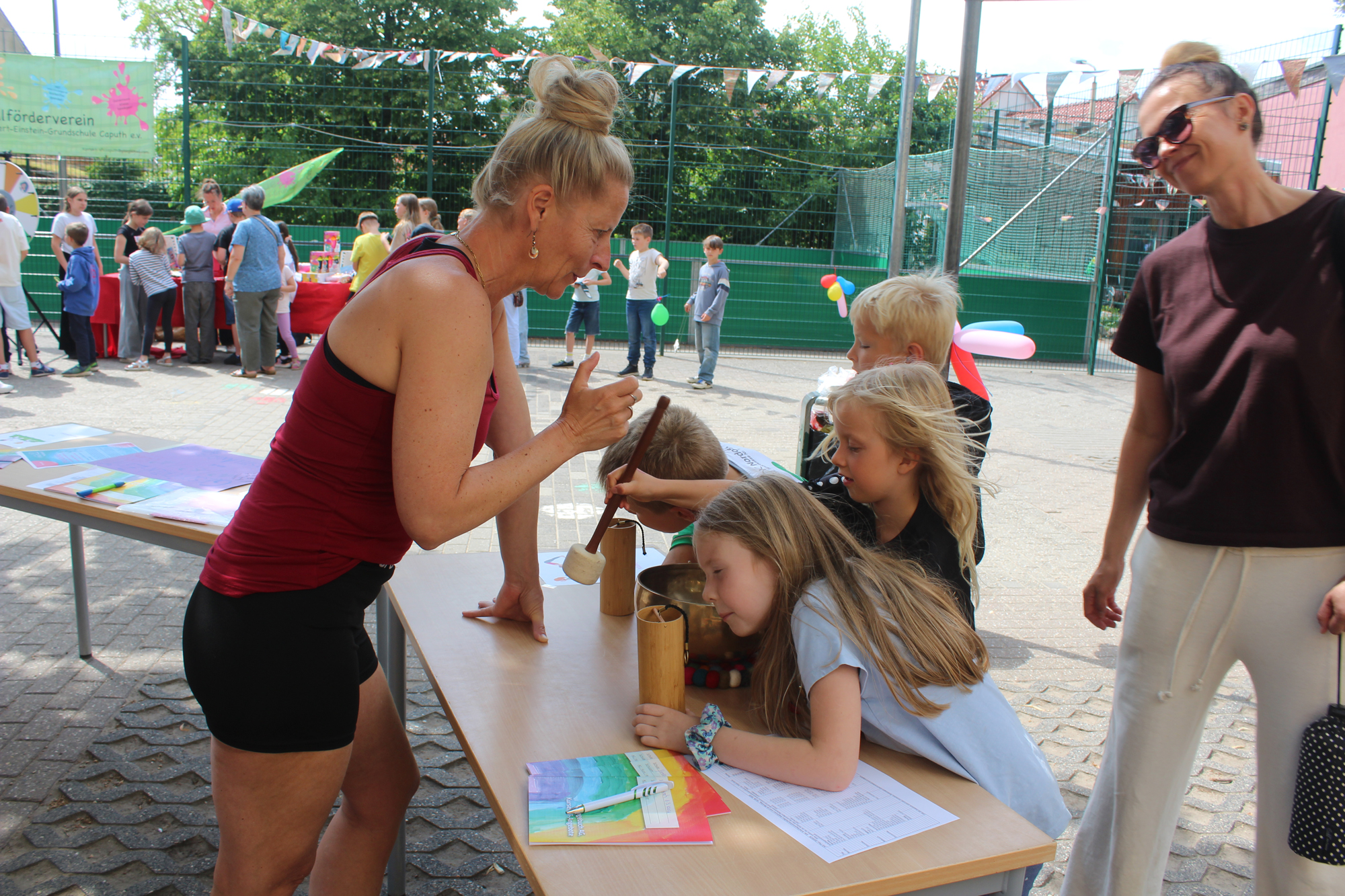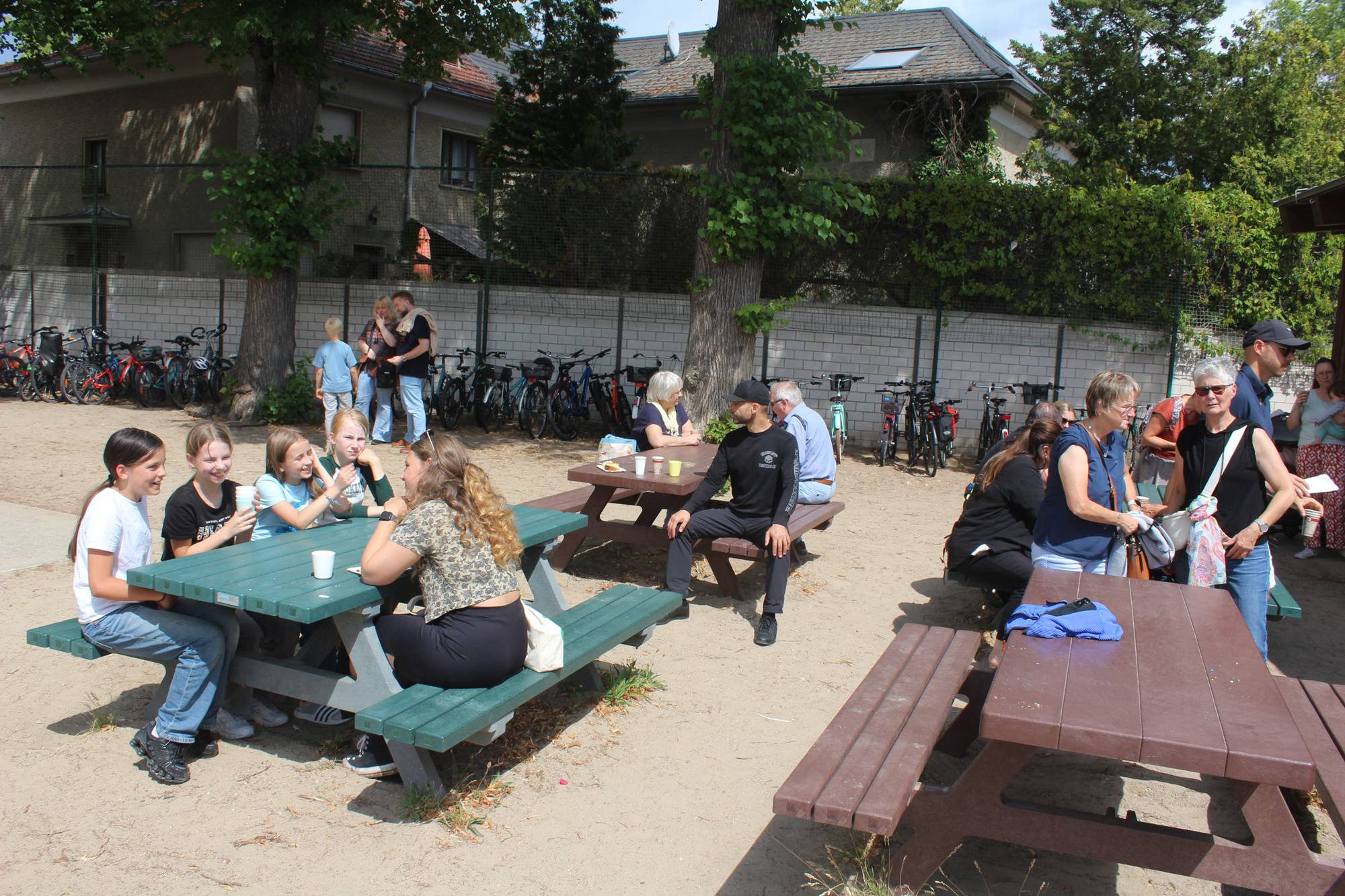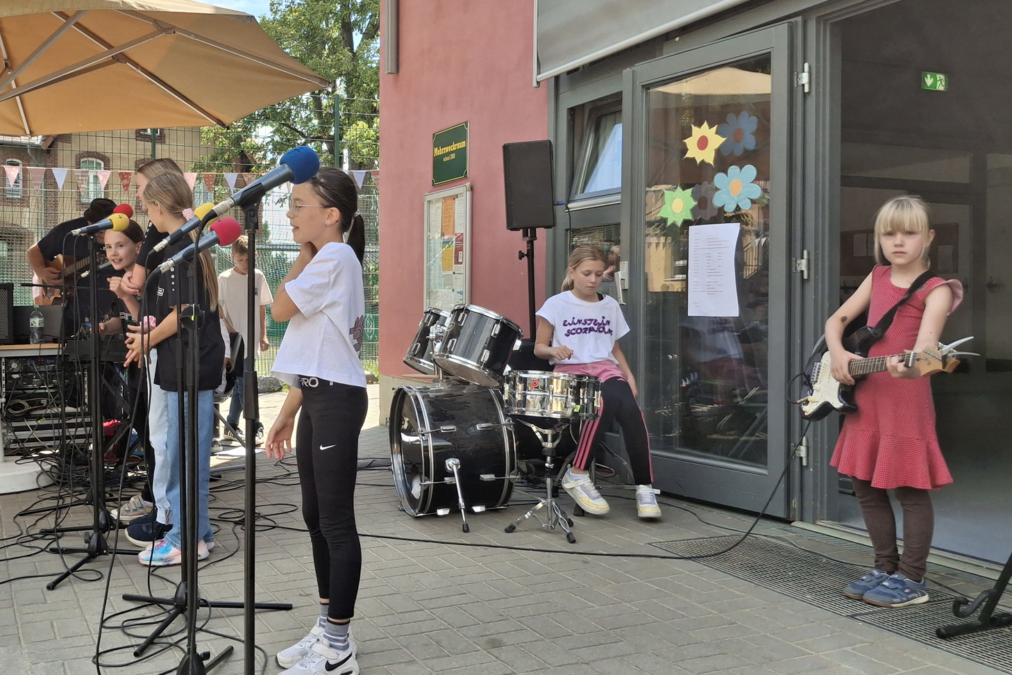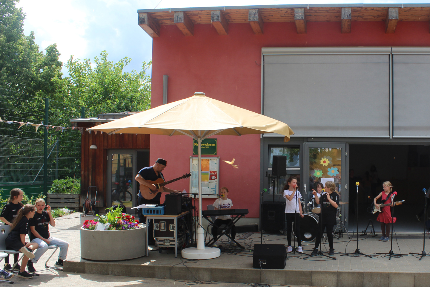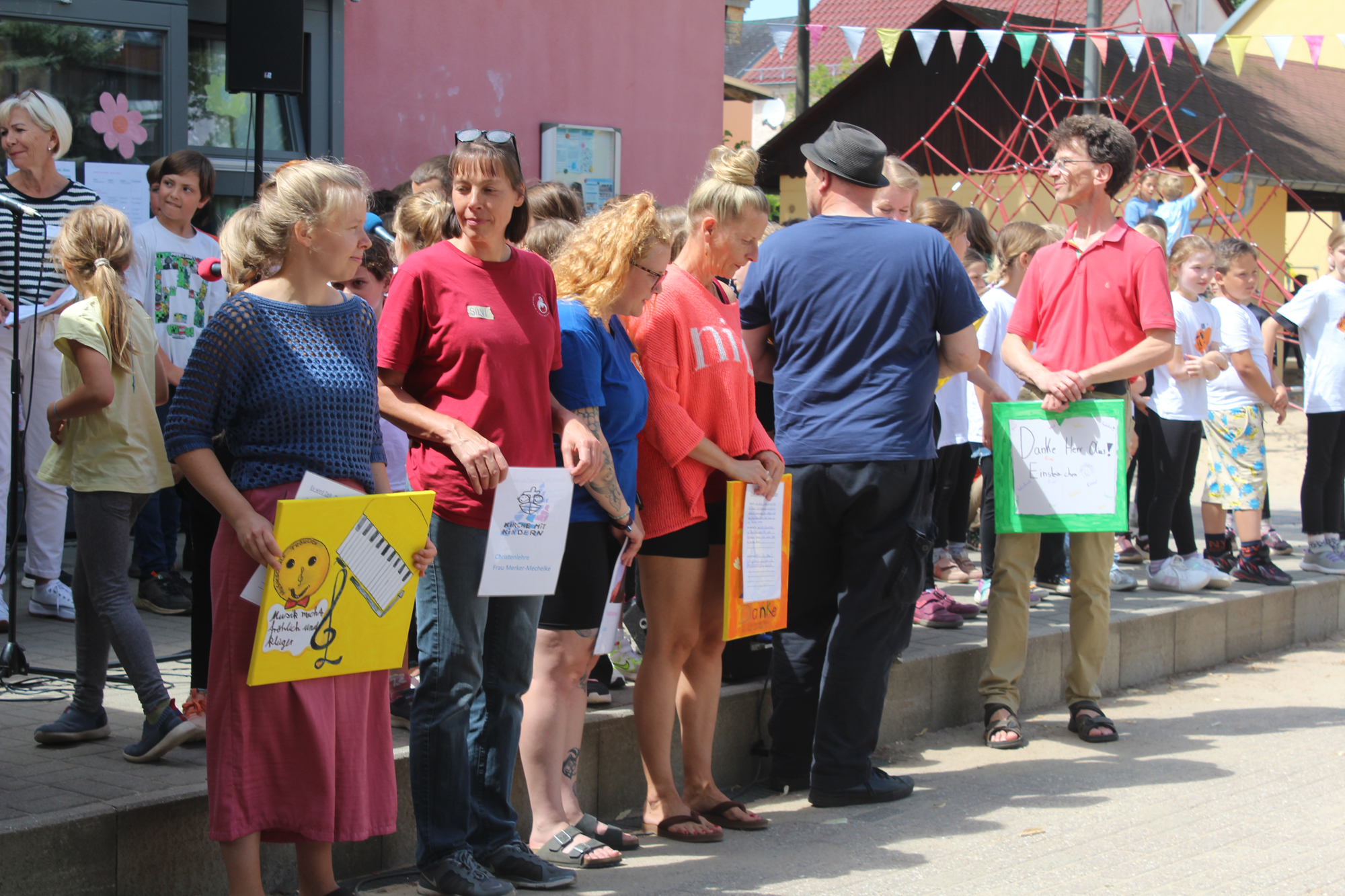 Wenige Tage vor dem Start der Sommerferien gab es wieder ein Fest auf dem Schulhof der EInstein-Grundschule in Caputh. Und wieder war es ein wirklich wunderschöner Nachmittag! Das Wetter spielte toll mit – bis auf ein paar wenige Regentropfen blieb es super sonnig und herrlich warm. So konnten alle Show-Anteile auf der Bühne vor dem Mehrzweckraum stattfinden und viele Eltern, Freunde und Angehöreige nutzten diese Möglichkeit. Was die Kinder im vergangenen Schuljahr in den verschiedensten AGs auf die Beine gestellt und gelernt haben, wurde voller Freude präsentiert.